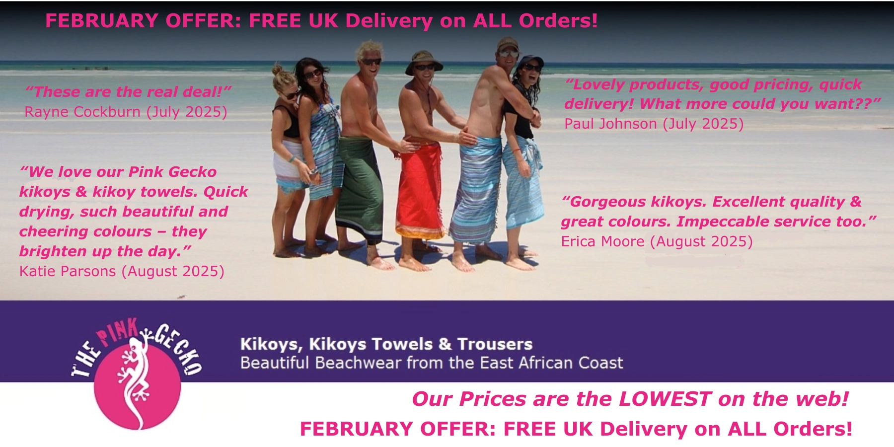 Welcome to the Pink Gecko! Kikoys, Kikoy Towels and Trousers!
