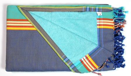 This kikoy towel is a denim kikoy with a turquoise border and turquoise towelling inner.