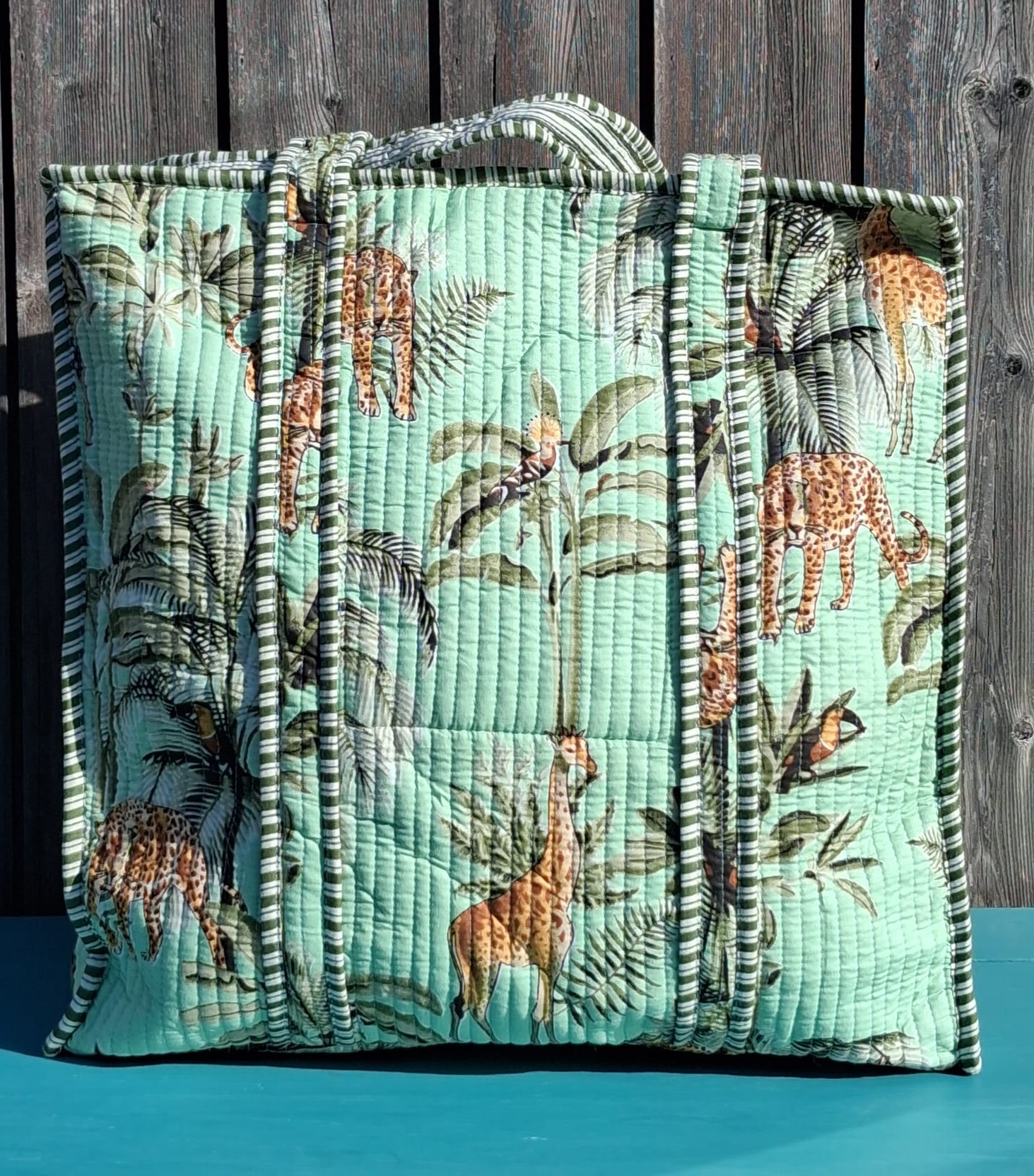 Quilted Indian Tote Bag (Green Giraffe)