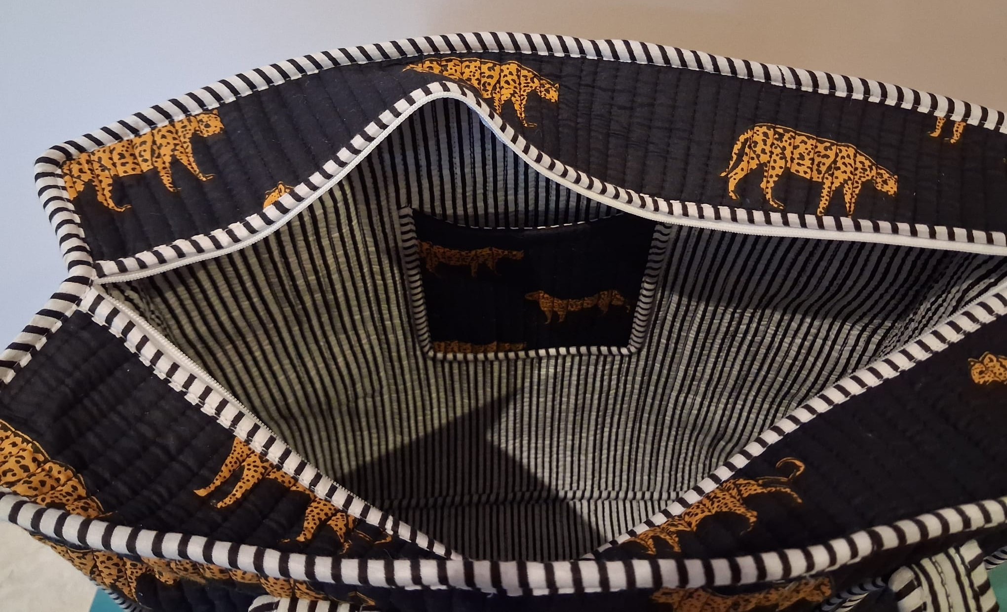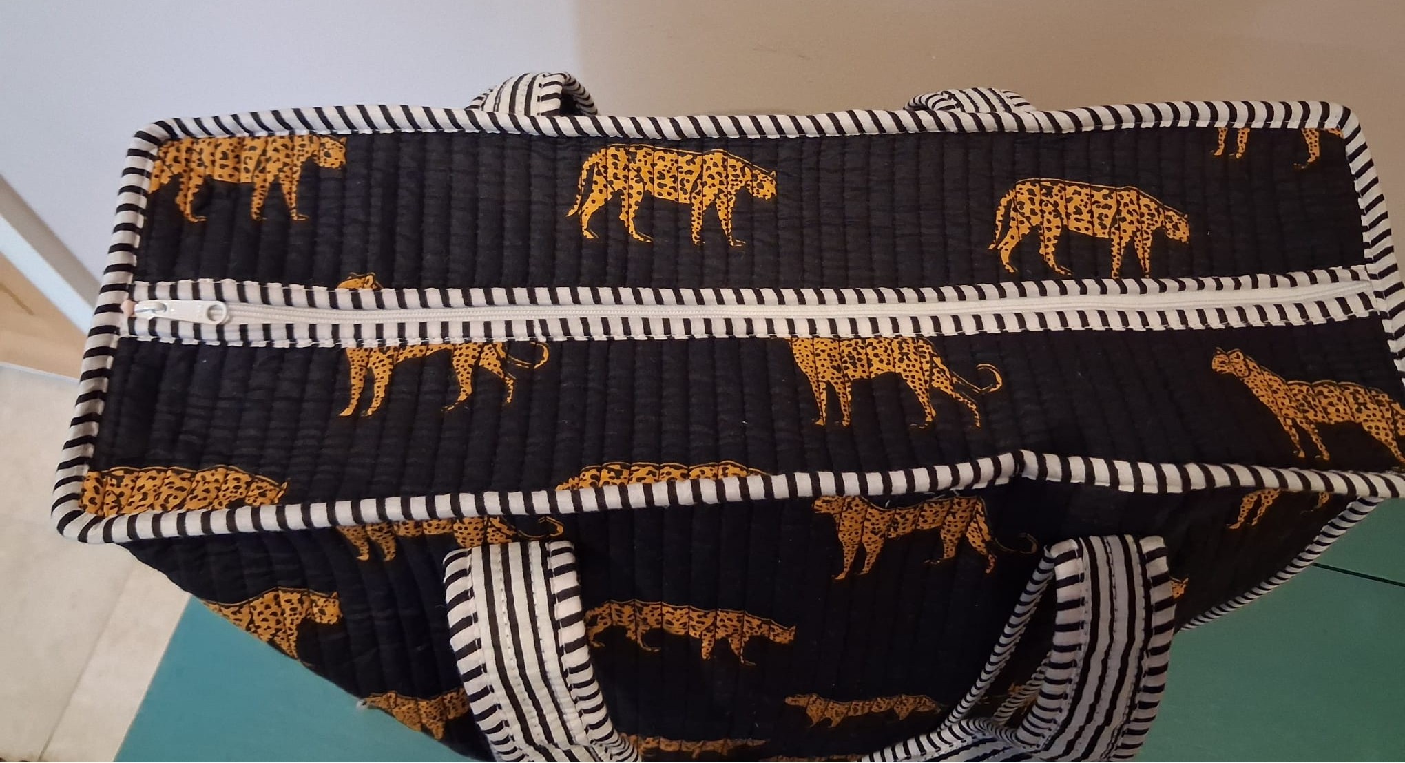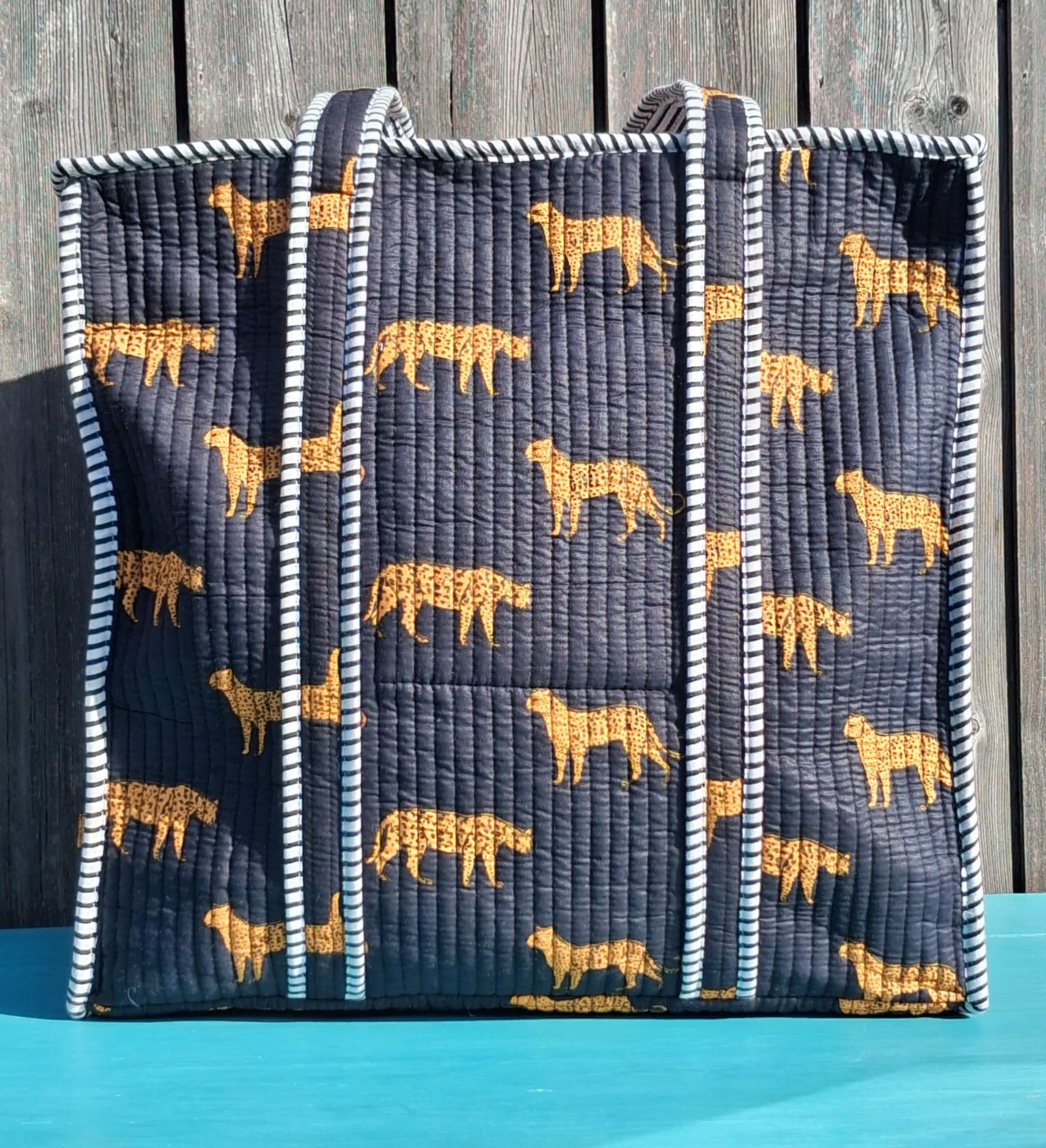 Quilted Indian Tote Bag (Black Leopard) Summary