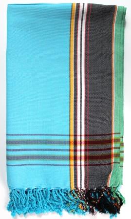 This beautiful kikoy is a beautiful turquoise with hand tied tassels.