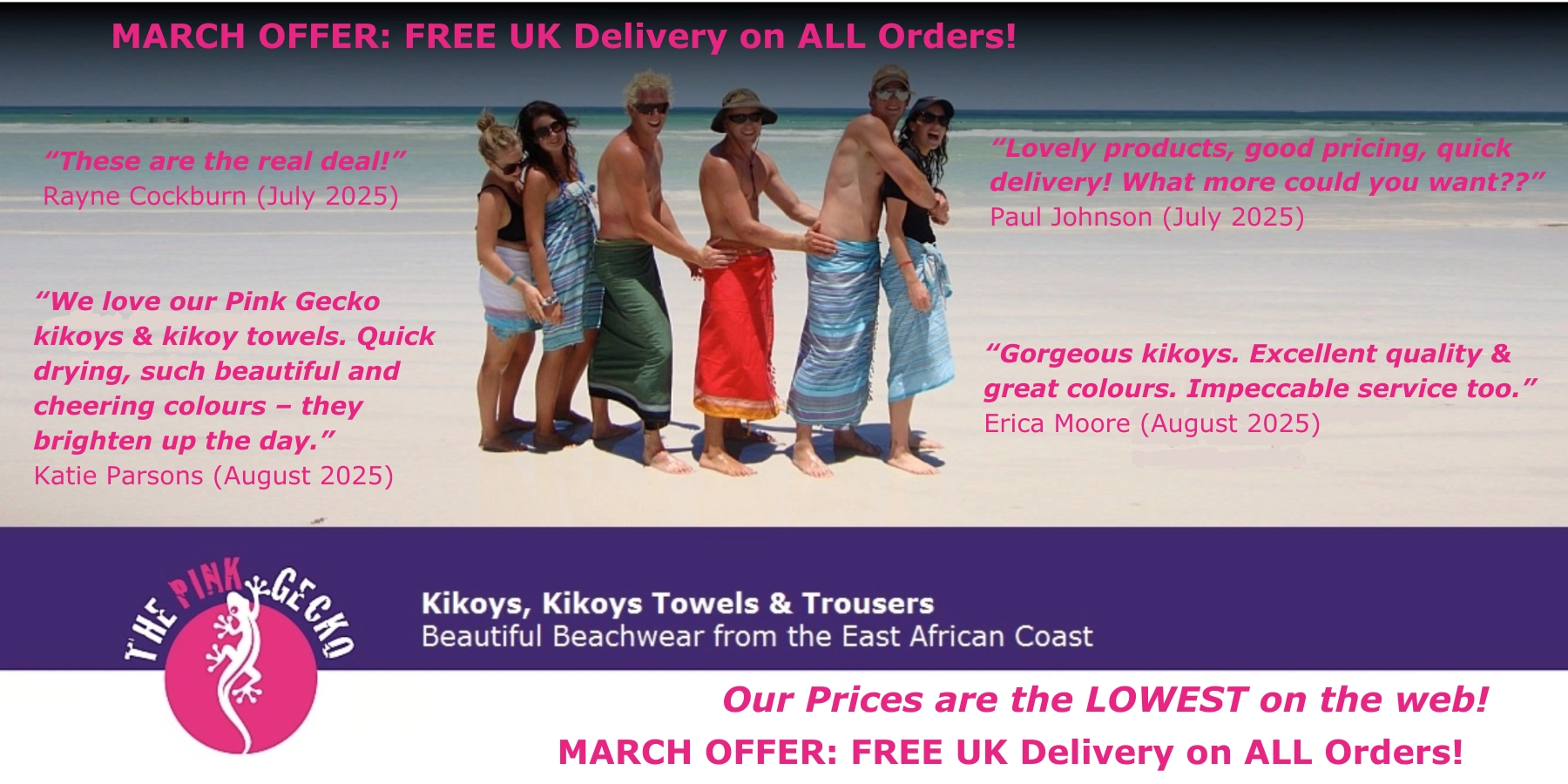 100% Cotton Kikoy This beautiful kikoy is a beautiful pink with a turquoise border and hand tied tassels. Kikoys are a wonderfully versatile piece of cloth...