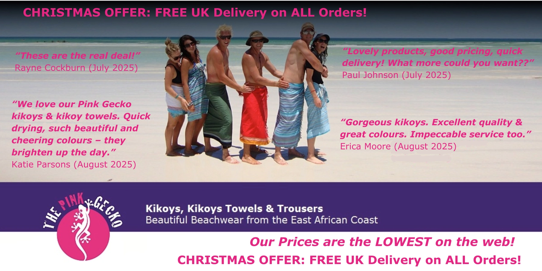 100% Cotton Kikoy This beautiful kikoy is a beautiful pink with a bright pink border and hand tied tassels. Kikoys are a wonderfully versatile piece of...